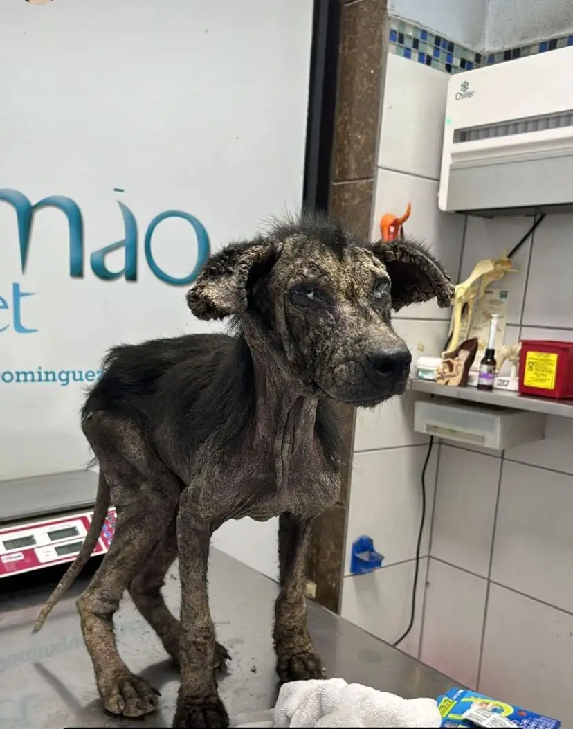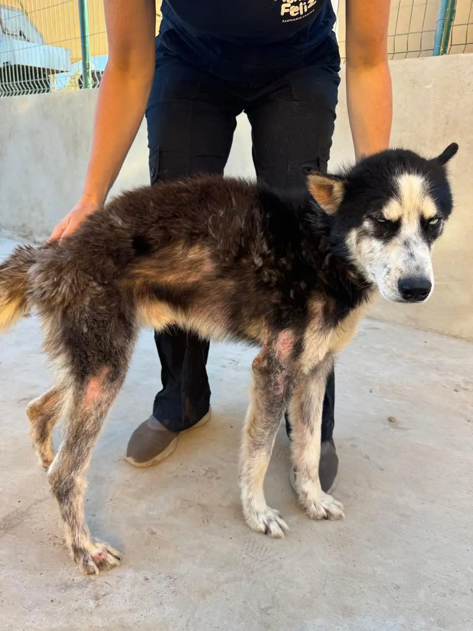 LOBITO fue encontrado abandonado a un lado de la carretera, con graves problemas de sarna.