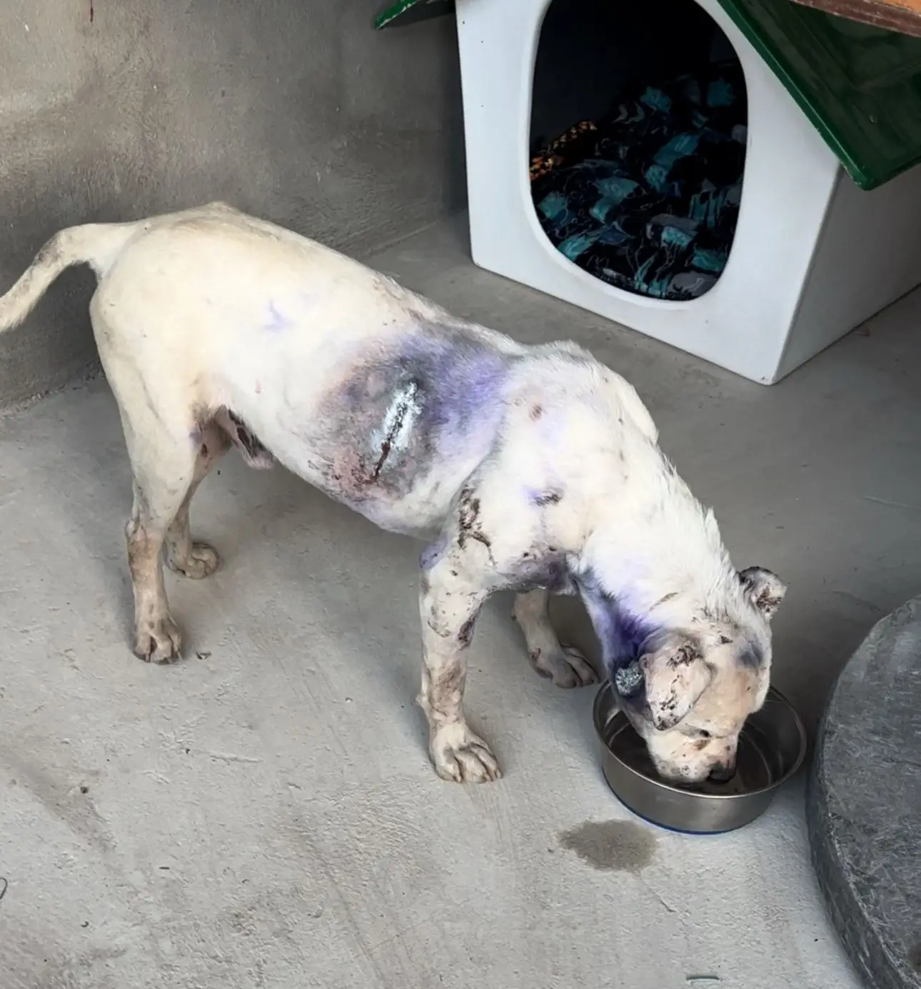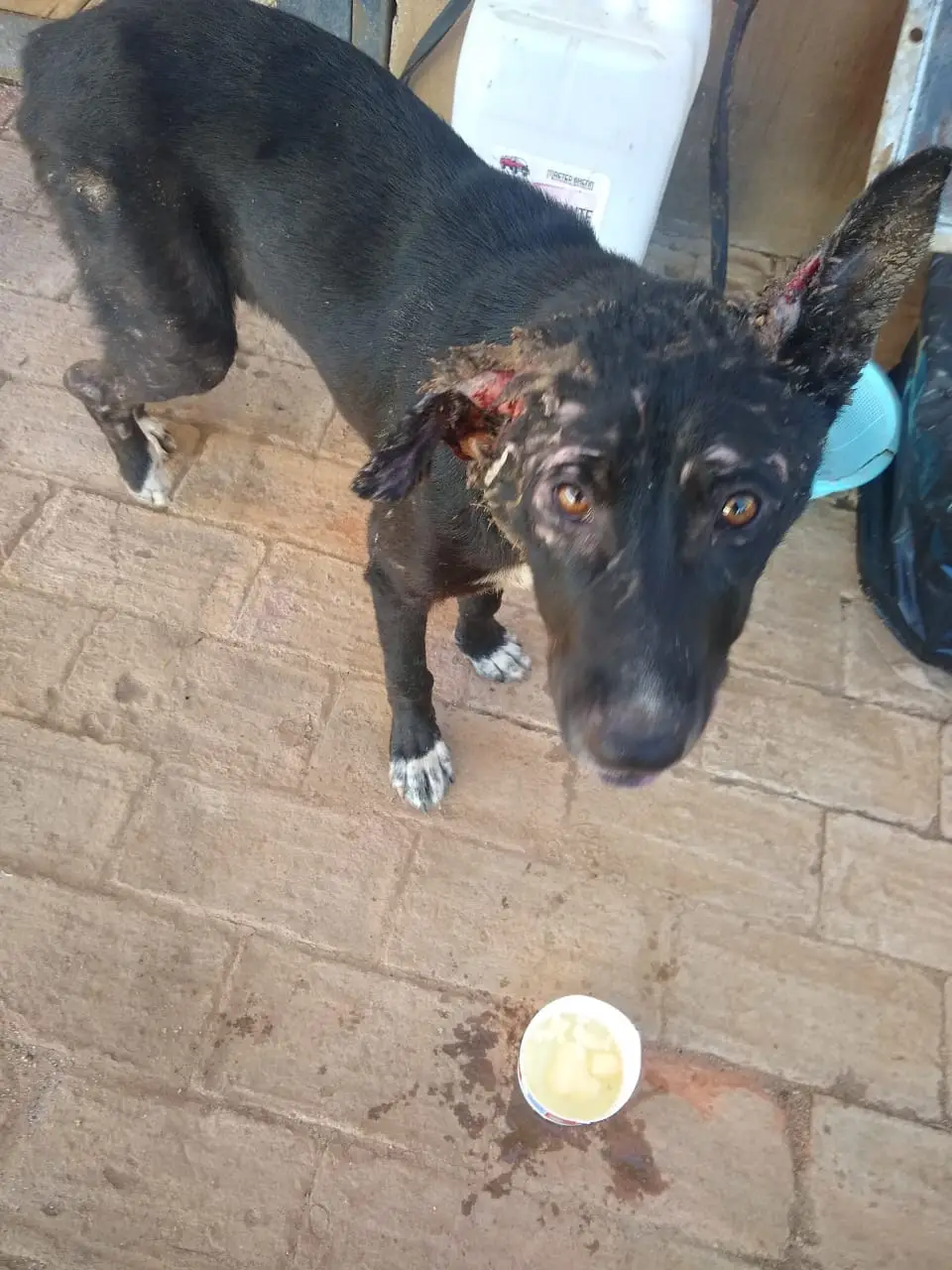 ZEUS es un perrito que fue rescatado en condiciones extremadamente graves. Presentaba múltiples heridas físicas, muchas de ellas infectadas con gusanos, y había recibido más de 20 machetazos.